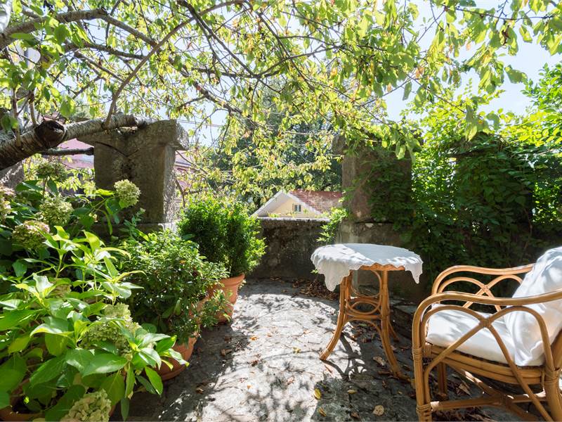 Il primo appartamento si compone di: ingresso, disimpegno, 5 camere, di cui 4 matrimoniali, salone doppio con camino, tinello, ampia cucina con camino, 2 bagni, lavanderia e due terrazze che si affacciano, con una vista mozzafiato, su Texile e la sua valle.